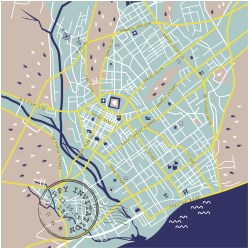 このデザインは地元静岡の地図がベースになっております。駿府城、登呂遺跡、浅間神社など主要な建物があり、よく見ると藤田屋も見つかります!