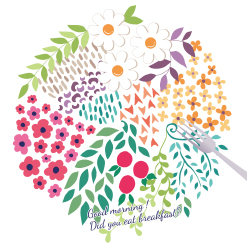 朝食をイメージしたカラフルでPOPな傘!明るく楽しい朝を彷彿とさせるカラーコンボで、雨の日も元気にスタートしよう!