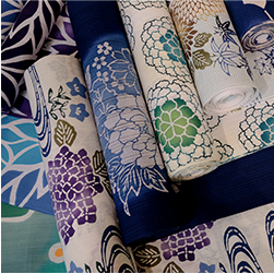 大正初期、遠州織物が発展して注染の浴衣地が生まれました。注染は日本独自の染色技法で、表裏全く同じ色に染色されます。また、水ぼかしにより優しい風合いを表現する事ができることも特徴の一つです。清水で洗い天日乾燥をするため、やわらかく肌に優しく、通気性がよい生地になります。浴衣の他にもシャツや手拭いなどにも加工されています。