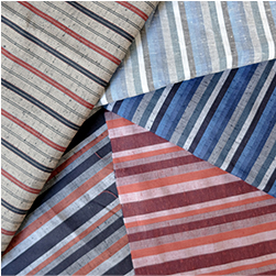 仁心の素材として選んだのは、時間と愛情をかけてゆっくりと多彩な糸を使って織り上げられるので目が細かく、豊富な縞のバリエーションが生まれるからです。個性豊かな縞模様から、お客様にぴったりな生地を選んでいただけることは仁心にとっても嬉しいことでした。また、傘の生地として張ると、モダンで凛とした印象になるのも魅力の一つです。より目の細やかな、傘に合った生地を模索したどり着きました。