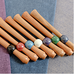 挽物で作られた滑らかで美しい手元に丸い玉のようなデザインをしたのは、この蒔絵をあしらうため。ファッションアイテムとしての傘を意識したとき、宝石のような蒔絵は仁心の日傘に欠かせません。高級感増す贅沢な輝きは白、黒、赤、紫、藍、青、緑から生地に合った色をお好みでお選びいただけます。
