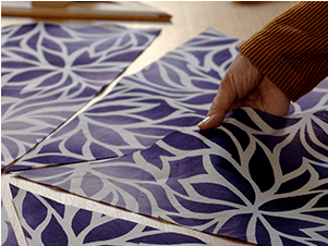 仁心の日傘は遠州綿紬、浜松注染そめの反物を使います。 -