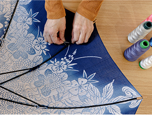 ひとつひとつの丁寧な作業を積み重ねて手作りの傘が出来上がります。